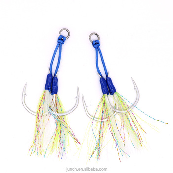 ช้าjigging Assistตะขอ1/0 2/0 3/0 4/0 5/0 7/0ช่วยjiggingเบ็ดFihisngตะขอที่มีขนนกส่องสว่าง